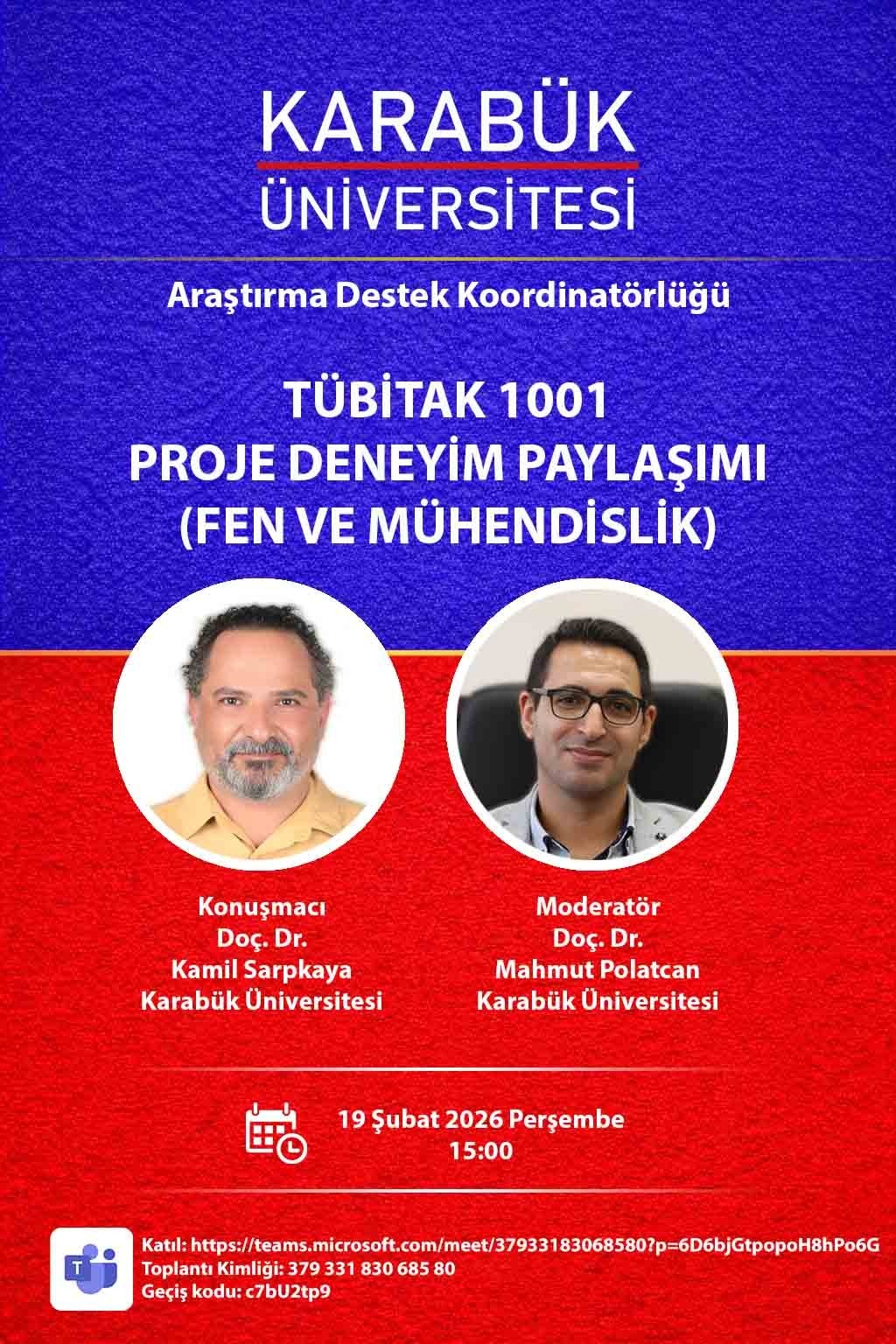 Seminer, 19 Şubat 2026 Perşembe günü saat 15.00’da Microsoft Teams platformu üzerinden çevrim içi olarak gerçekleştirilecektir.